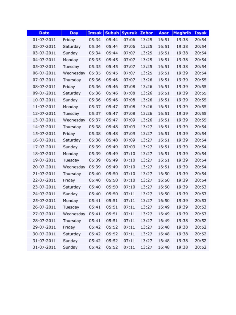Jadual Waktu Solat Negeri Selangor Zon 1 Tahun 2021 Majlis Perbandaran Sepang